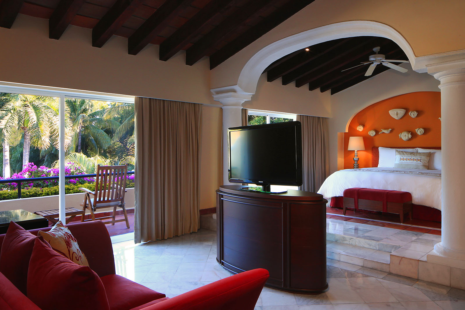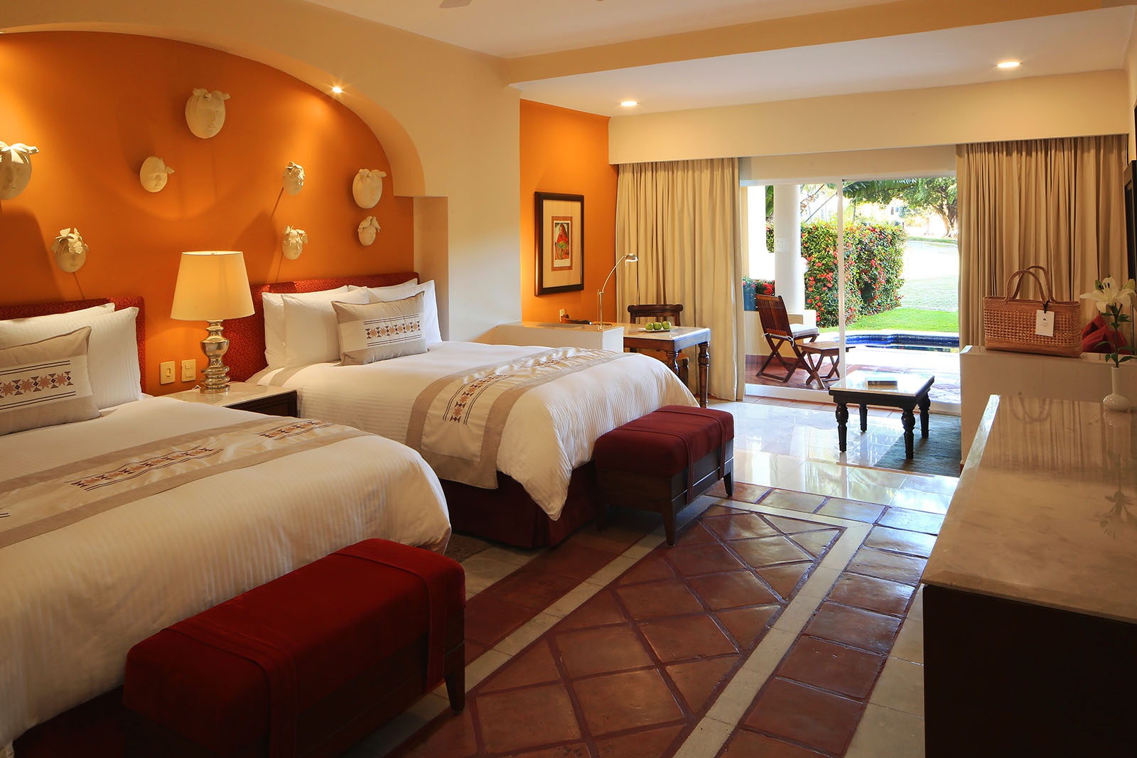 Los jardines y áreas verdes que rodean Casa Velas son un escenario perfecto para cualquier viaje de Grupos y Convenciones. Su arquitectura colonial al estilo de las antiguas Haciendas de Jalisco, arcos, techos abovedados, pasillos y estanques interiores ofrecen espectaculares vistas al campo de golf y al Pacífico mexicano. Lo invitamos a dar un recorrido a través de las instalaciones y escenarios naturales que inspirarán su próximo evento en Puerto Vallarta.